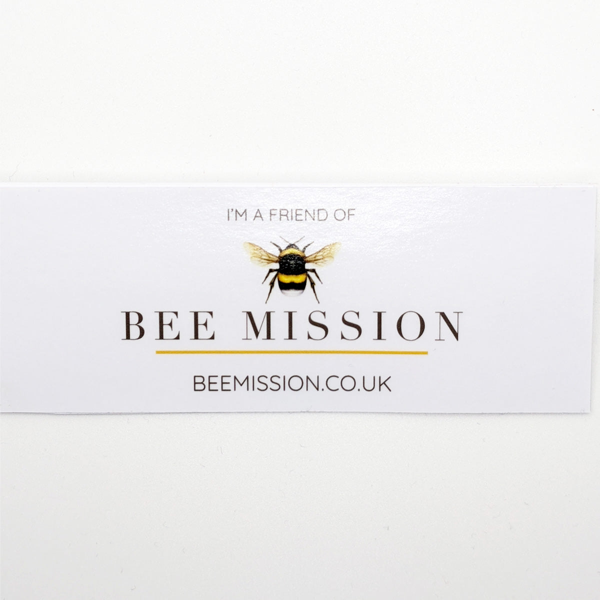 A Clear Window Sticker featuring the Bee Mission bee. Suitable for home, office or car windows. Helps spread the message about the importance of pollinators.